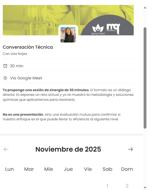 Agenda una sesión de sinergia de 30 minutos y tengamos una conversación técnica con el propósito claro de abordar retos reales de la planta, nos centraremos en analizar cómo una química más inteligente puede impactar directamente en sus procesos: ya sea eliminando las micro-paradas causadas por la espuma, extendiendo la vida útil de sus activos a través de una protección de superficies superior, o implementando protocolos de limpieza más seguros con desengrasantes de alto rendimiento.